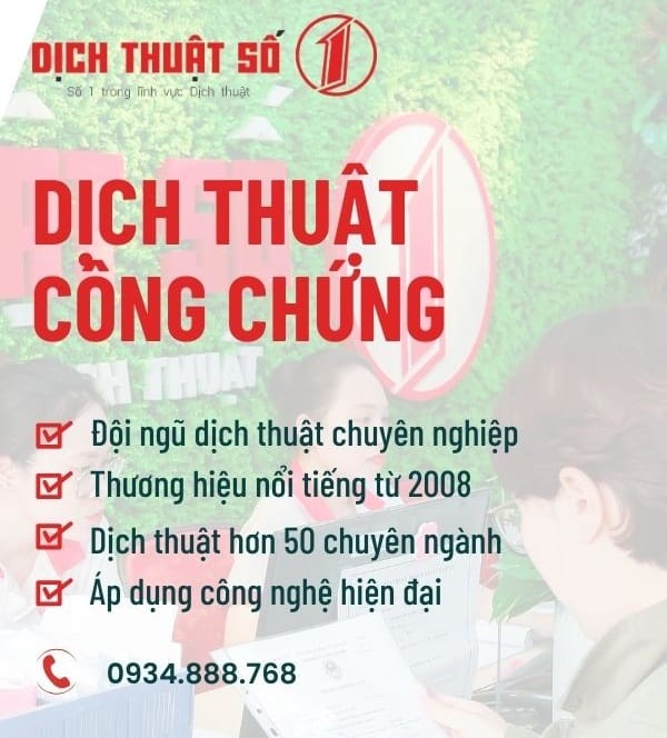 Dịch thuật Số 1 tự hào là đơn vị cung cấp dịch vụ dịch thuật công chứng tốt nhất tại Đà Nẵng với uy tín được khẳng định qua 16 năm hoạt động từ năm 2008. Đội ngũ dịch giả của chúng tôi là những người có chuyên môn sâu và được đào tạo cẩn thận, đảm bảo khả năng dịch thuật đa dạng và chính xác.