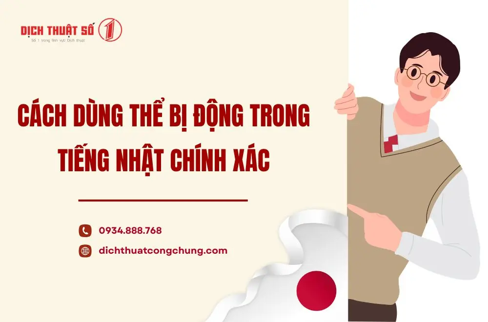 Trong quá trình học tiếng Nhật, bên cạnh các cấu trúc cơ bản, thể bị động (受け身) là một trong những điểm ngữ pháp quan trọng nhưng dễ gây nhầm lẫn cho người học. Việc nắm vững cách chia và cách dùng thể bị động sẽ giúp bạn diễn đạt tự nhiên hơn trong giao tiếp, đồng thời nâng cao khả năng làm bài thi JLPT. Trong bài viết này, Dịch Thuật Công Chứng Số 1 sẽ hướng dẫn chi tiết cho bạn từ lý thuyết đến ví dụ thực tế để hiểu và áp dụng chính xác cấu trúc này.