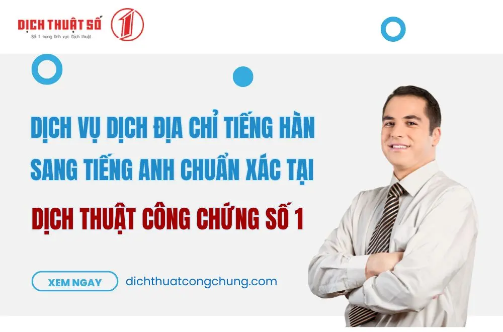 Việc dịch địa chỉ tiếng Hàn sang tiếng Anh không chỉ là chuyển đổi ngôn ngữ, mà còn đòi hỏi bạn phải hiểu rõ cấu trúc hành chính, cách sắp xếp và quy ước trình bày trong các tài liệu quốc tế. Nếu bạn đang cần dịch địa chỉ cho các loại giấy tờ như hộ khẩu, hợp đồng, hồ sơ xin visa, bằng lái xe hoặc chứng nhận bất động sản, hãy liên hệ ngay với Dịch Thuật Công Chứng Số 1. Với gần 20 năm kinh nghiệm, đội ngũ chuyên viên của chúng tôi cam kết mang đến bản dịch tiếng Hàn chính xác, chuẩn pháp lý và được công chứng nhanh chóng – giúp bạn yên tâm tuyệt đối trong mọi thủ tục trong và ngoài nước.