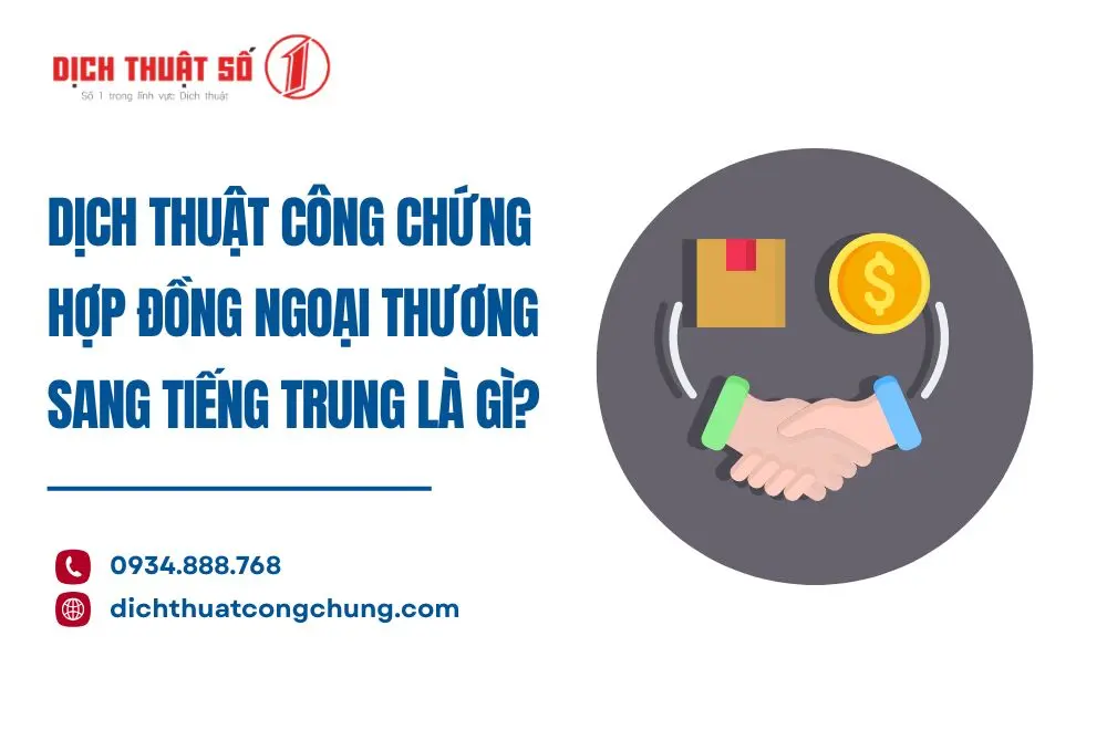 Dịch thuật công chứng hợp đồng ngoại thương sang tiếng Trung là bước quan trọng để đảm bảo tính pháp lý và hiệu lực của giao dịch quốc tế. Với Dịch Thuật Công Chứng Số 1, bạn sẽ nhận được dịch vụ chuyên nghiệp, chuẩn xác và nhanh chóng, giúp quá trình xuất nhập khẩu diễn ra thuận lợi, an toàn và tiết kiệm thời gian. Liên hệ ngay để được tư vấn và báo giá chi tiết!