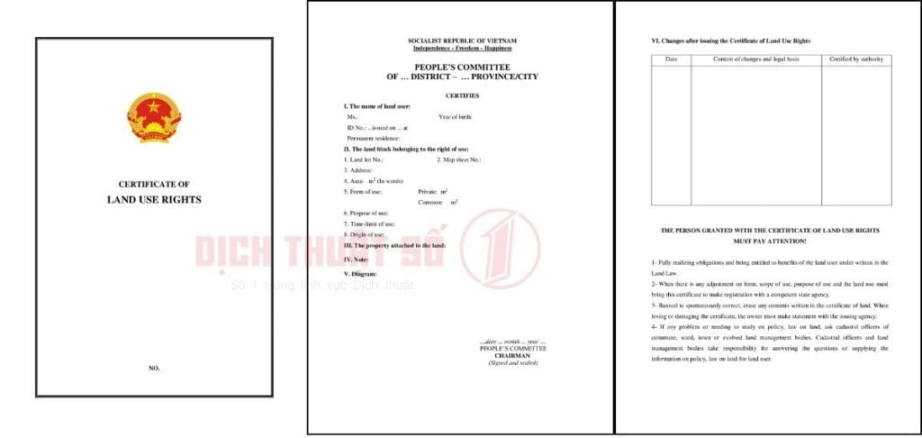 Mẫu dịch giấy chứng nhận quyền sử dụng đất bằng tiếng Anh