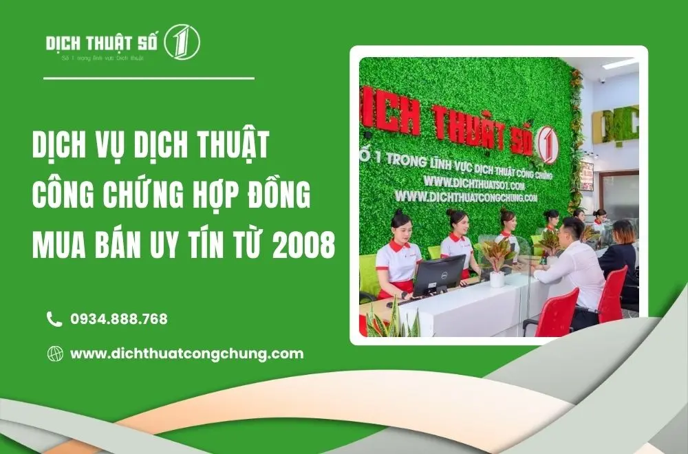 Trong các giao dịch mua bán, đặc biệt là khi có yếu tố nước ngoài, hợp đồng mua bán cần được soạn thảo và dịch thuật công chứng đúng quy định pháp luật để đảm bảo tính hợp pháp và hiệu lực pháp lý. Từ năm 2008, Dịch Thuật Công Chứng Số 1 đã trở thành địa chỉ uy tín hàng đầu cung cấp dịch vụ dịch thuật công chứng hợp đồng mua bán nhanh chóng, chính xác và chuyên nghiệp, giúp khách hàng hoàn tất hồ sơ thuận lợi và an toàn.